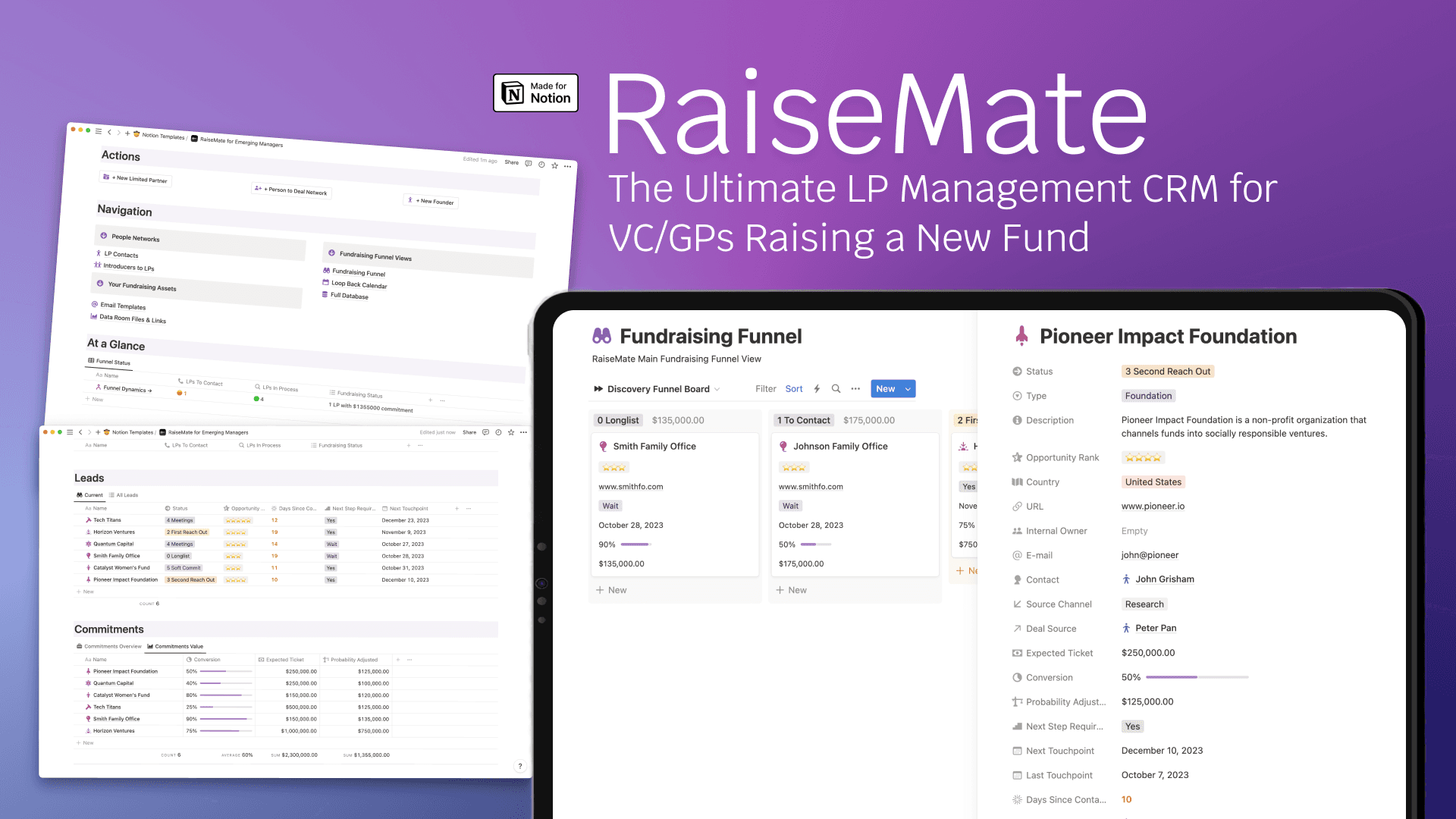 This ultimate LP Management CRM, available on Notion, is designed to make the fundraising process as smooth and efficient as possible. It helps in managing LP interactions, tracking outreach, and maintaining a dynamic view of your fundraising funnel.